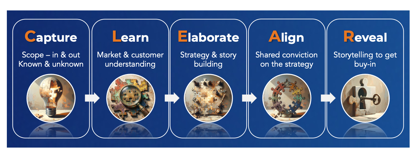 The CLEAR framework is a structured process that moves from defining the challenge to revealing a narrative that leaders can actually use.