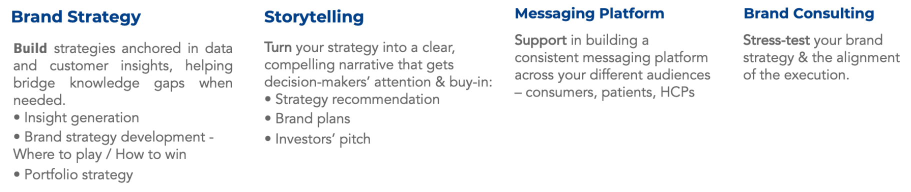 Fractional Brand strategy & Storytelling partner with over 20 years of experience in brand leadership across different industries (FMCG, Healthcare) and geographies, crafting strategies and selling them to demanding stakeholders – including sales teams, CEOs and Executive Committees. 15 years of experience in Healthcare – FS, OTC, Rx portfolios.